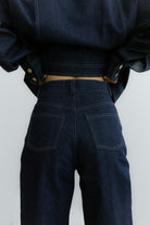 High-waisted krój pięknie wydłuża nogi i podkreśla talię, a strukturalny, mięsisty denim zapewnia idealne trzymanie formy przy pełnej swobodzie ruchu.