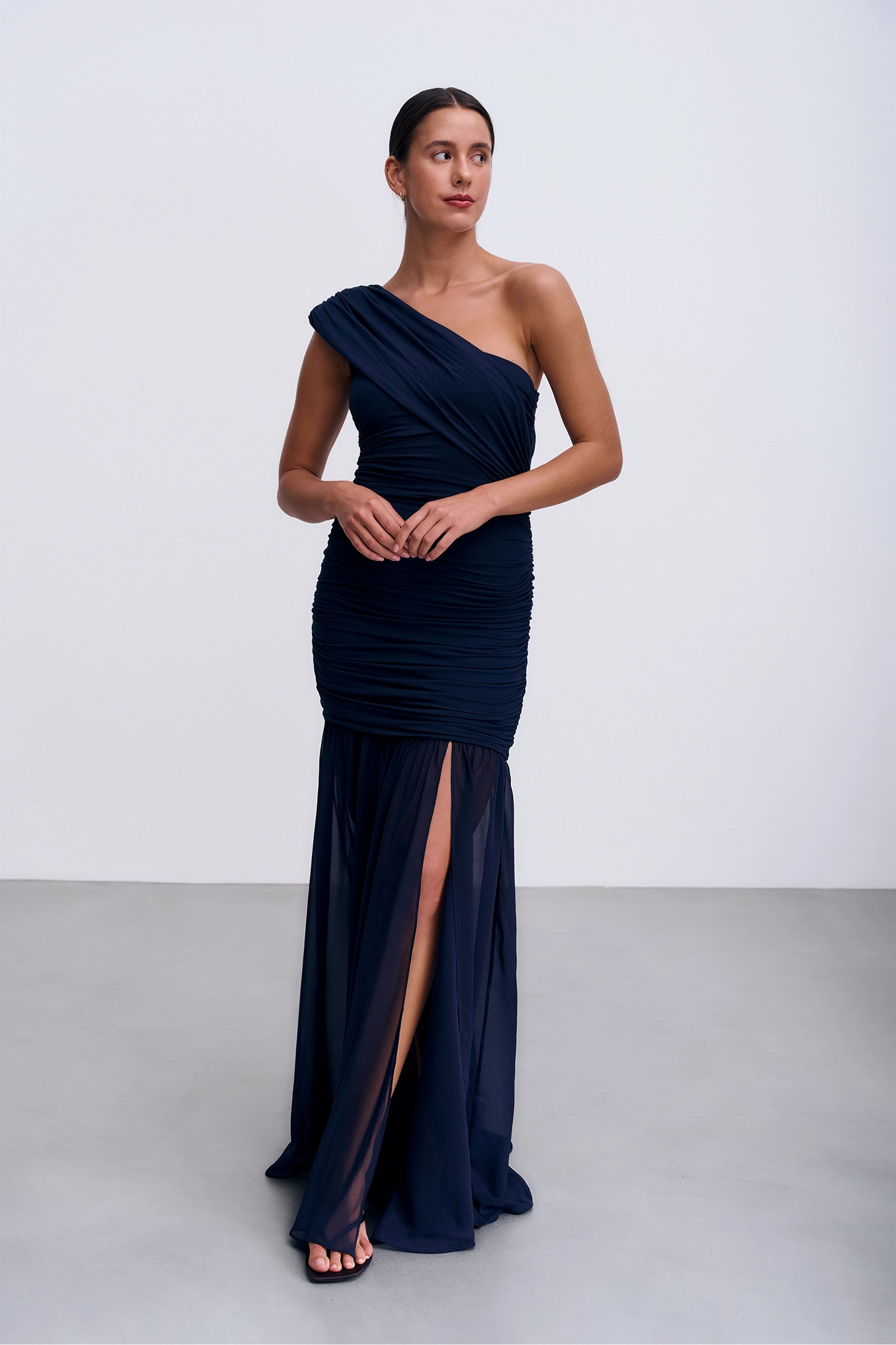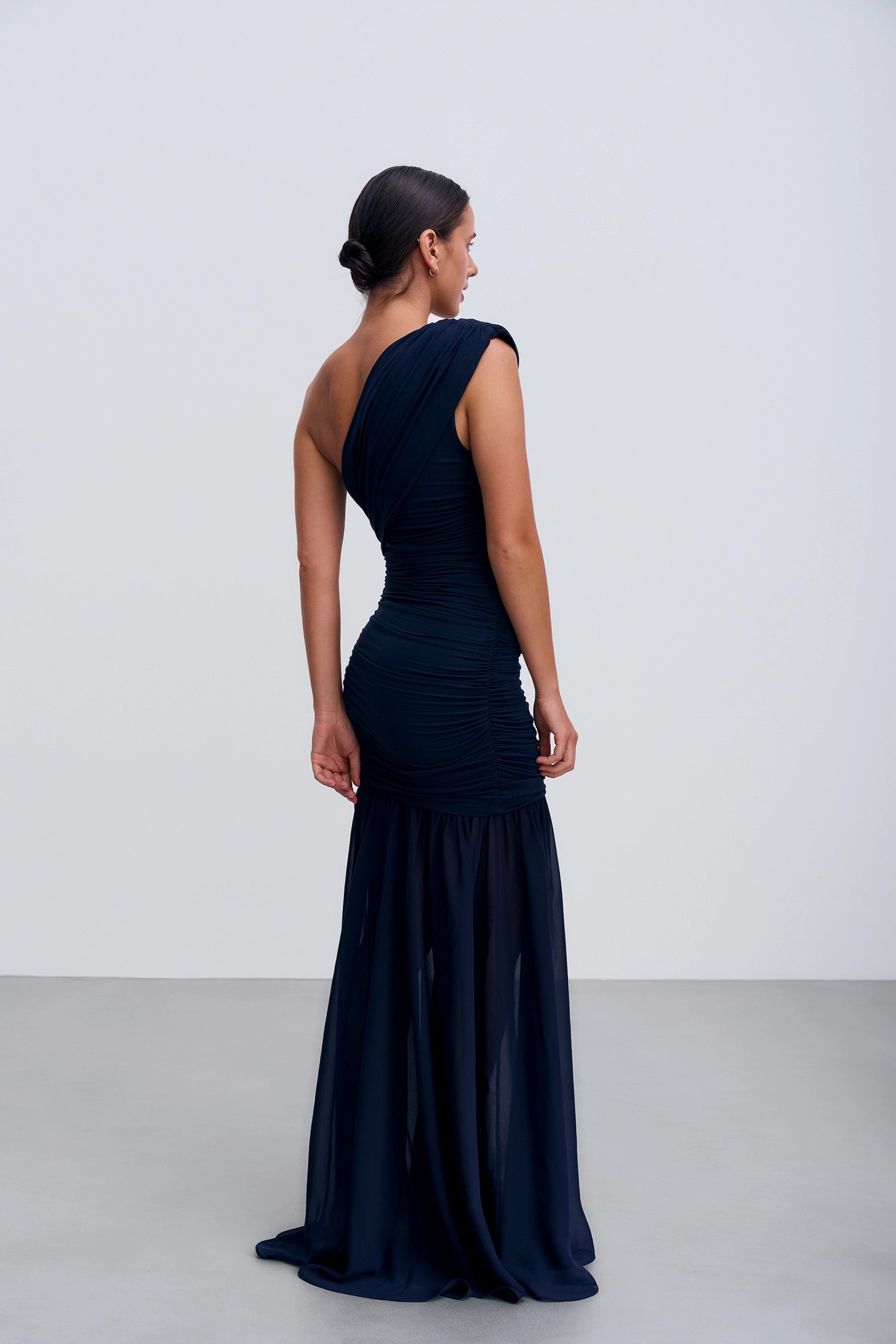 Ravenna to kwintesencja wieczorowej elegancji – długa suknia w głębokim odcieniu granatu, stworzona z myślą o wyjątkowych momentach. Zainspirowana włoskim miastem sztuki i historii, łączy klasykę z nowoczesną zmysłowością.